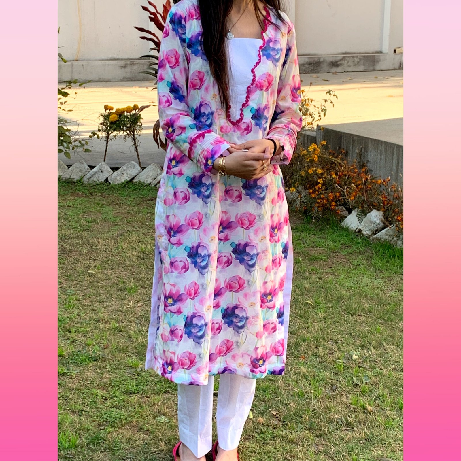 Blush Petal Breeze-Soft Floral watercolor design, light fabric, and delicate pink and purple hues that give it a fresh and airy feel.