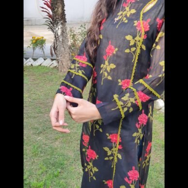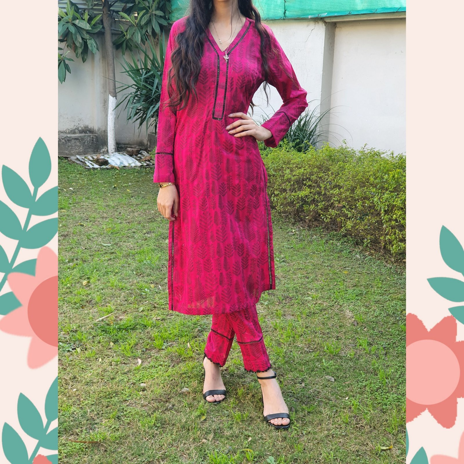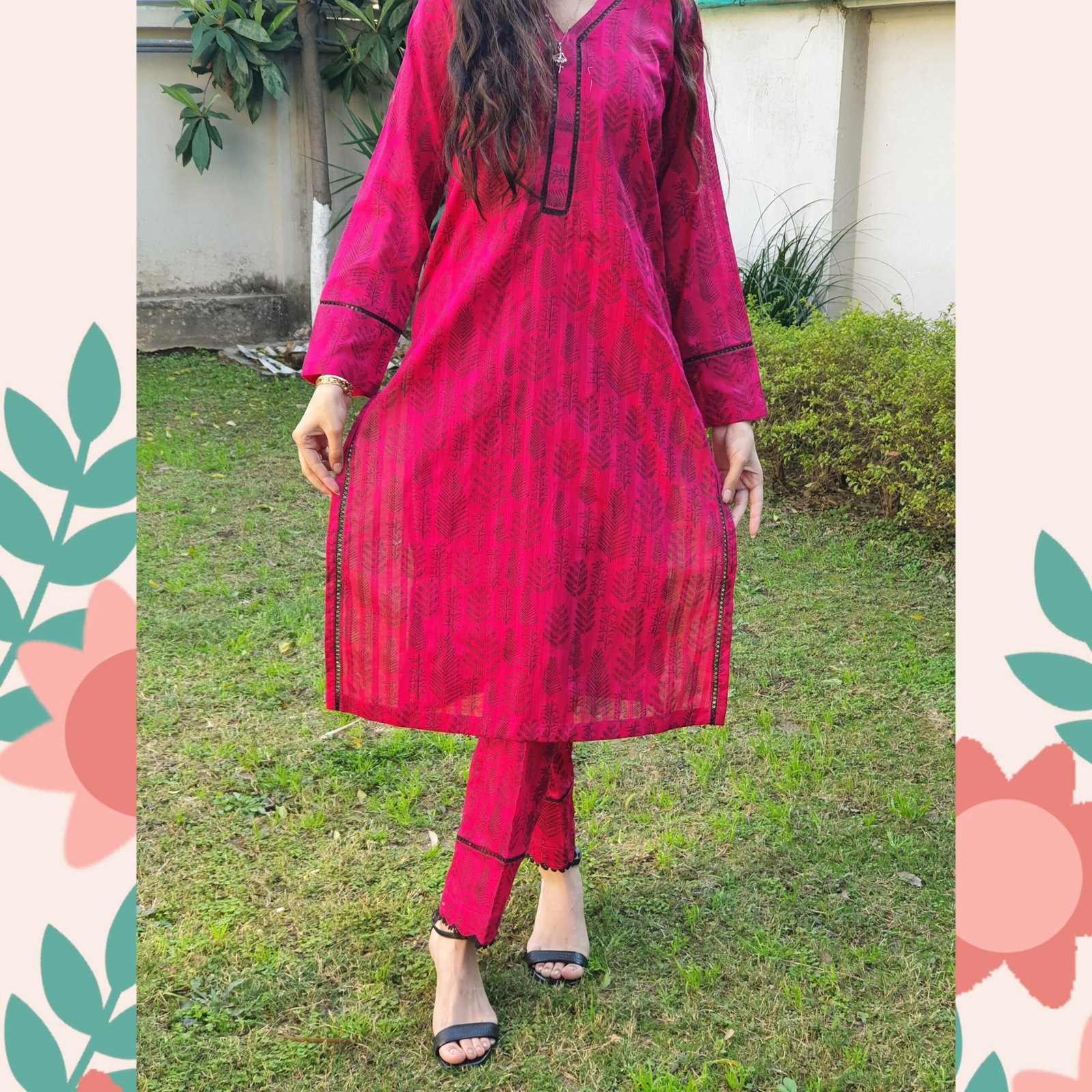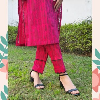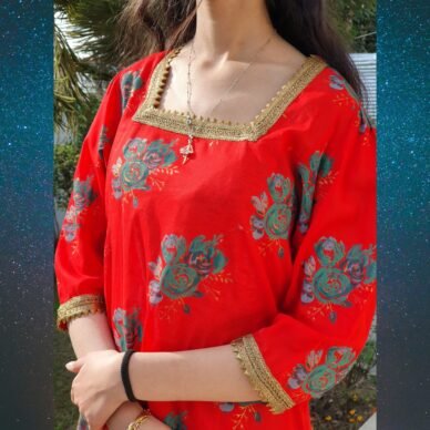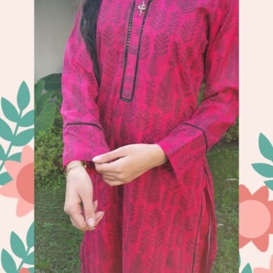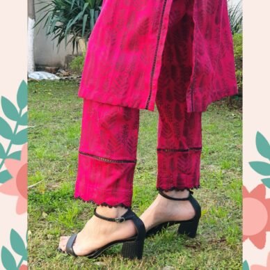 Ruby Bloom, reflecting its deep red color and subtle floral-inspired pattern.